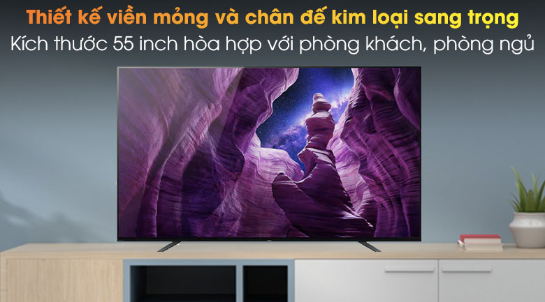 Android Tivi OLED Sony 4K 55 inch KD-55A8H sở hữu thiết kế One Slate siêu mỏng hiện đại, viền kim loại mỏng cho bạn tập trung tối đa vào màn hình giúp bạn đắm chìm trong từng hình ảnh mà không bị phân tâm.