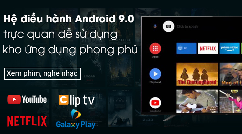Tivi Sony sở hữu giao diện Android 9.0 hiện đại và quen thuộc, gọn gàng, dễ thao tác cùng khả năng xử lý ổn định.