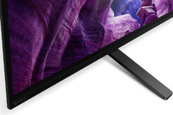 Tivi Sony A8H này sở hữu chân đế kim loại có tính linh hoạt với 2 cách lắp đặt, có thể nâng hạ để bạn có thể đặt loa thanh phía dưới tivi nếu thích.