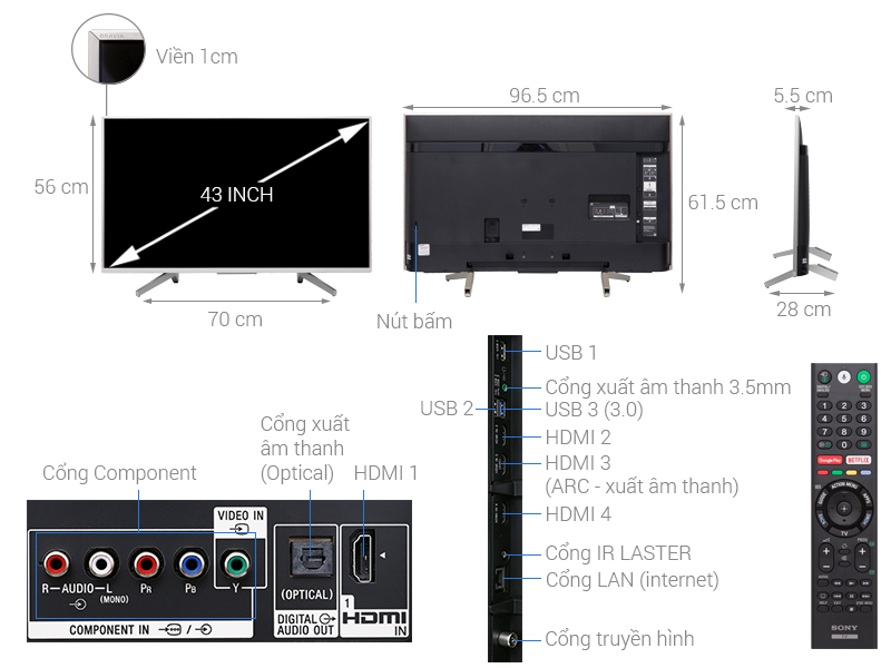 Android Tivi Sony 4K 43 inch KD-43X8500F/S với kiểu dáng thanh mảnh cùng chân đế vững chắc góp phần tôn lên vẻ sang trọng và hiện đại cho ngôi nhà bạn.