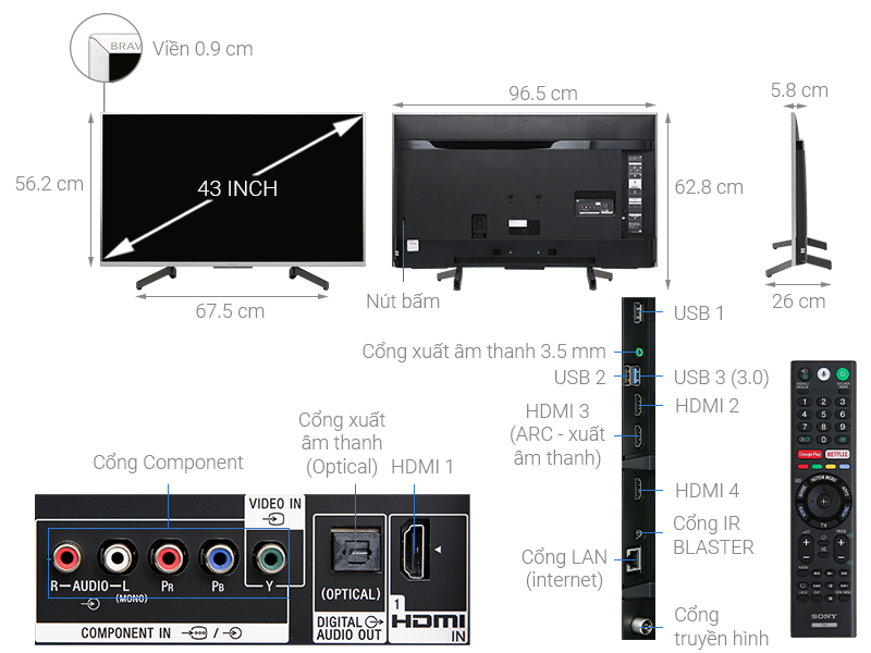 Android Tivi Sony 4K 43 inch KD-43X8500G/S