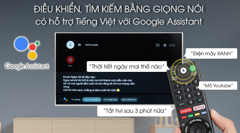 • Hỗ trợ điều khiển, tìm kiếm giọng nói Tiếng Việt nhờ trợ lý ảo Google Assistant.