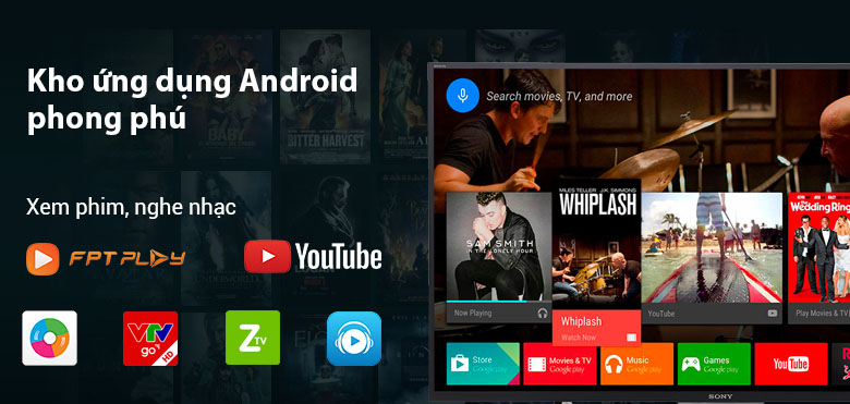 TV Sony 4K được cài sẵn các ứng dụng như: YouTube, Netflix, Trình duyệt web,… ngoài ra bạn còn có thể tải thêm nhiều ứng dụng nữa trên kho ứng dụng Google Play như: FPT Play, ClipTV, Nhạc của tui, Spotify, VTV Go, Game Asphalt 8,… giúp đáp ứng tốt nhu cầu của bạn.
