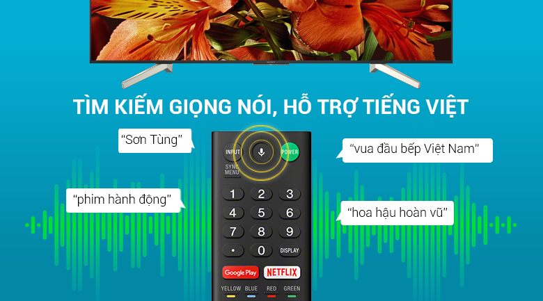 Android tivi Sony này còn được trang bị một remote thông minh, bạn có thể tìm kiếm bằng giọng nói bằng tiếng Việt đơn giản, nhanh chóng mà không phải nhập liệu phức tạp với bàn phím trên màn hình tivi.