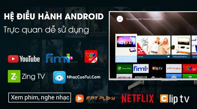 Chiếc Android tivi Sony chạy trên hệ điều hành Android sử dụng vô cùng dễ dàng và đơn giản. Đi kèm đó là kho ứng dụng phong phú như: FPT Play, Clip TV, Nhaccuatui, Zing TV, Zing Mp3,… và rất nhiều các ứng dụng thú vị đang chờ bạn khám phá.
