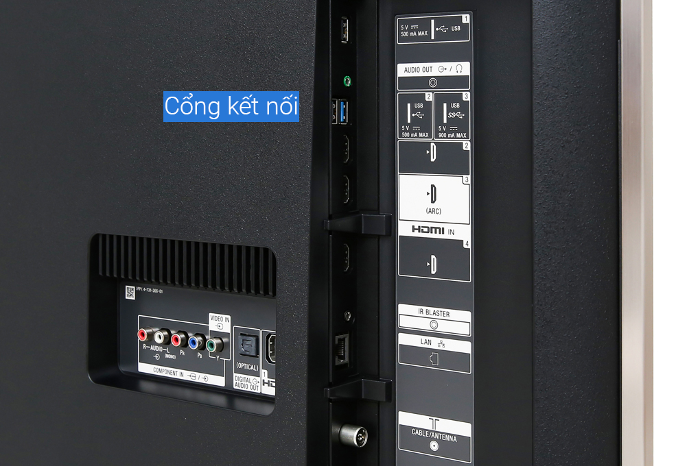 Ngoài việc dùng được chuột, bàn phím, thì chiếc Android Tivi Sony này còn được trang bị đầy đủ cổng kết nối phổ biến như: HDMI, USB, Optical, Component,… giúp bạn kết nối với các thiết bị ngoại vi để tận hưởng nhiều tiện ích trên tivi.