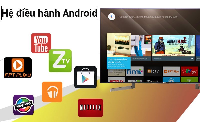Android tivi Sony trên nền tảng hệ điều hành Android đơn giản dễ sử dụng bên cạnh kho ứng dụng phong phú như: YouTube, Netflix, Trình duyệt web,… và còn có thể cài thêm nhiều ứng dụng khác như: FPT Play, Zing TV, Spotify,… hứa hẹn sẽ mang đến bạn và gia đình những phút giây thư giãn thoải mái.