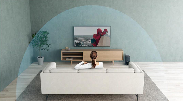 Công nghệ Dolby Atmos phát âm thanh đa chiều từ phía trên và các bên để đồng thời thể hiện âm thanh của các vật trong 1 khung hình tại cùng thời điểm, đưa bạn hòa nhập vào trong từng khung cảnh.