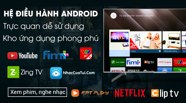 Android tivi này chạy trên nền tảng hệ điều hành Android đơn giản, dễ sử dụng cùng nhiều ứng dụng có sẵn: YouTube, Netflix, Trình duyệt web,…