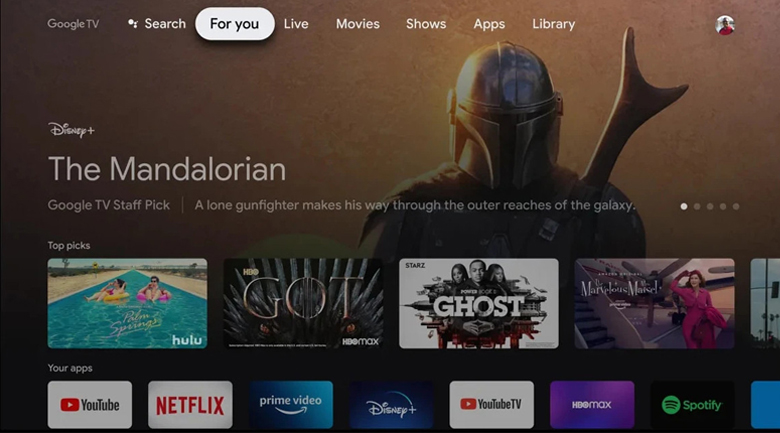 Hệ điều hành Android 10 có giao diện được thiết kế rất dễ dùng, cùng với kho ứng dụng rất phong phú, có thể đáp ứng được nhu cầu giải trí của các thành viên trong gia đình bạn. Các ứng dụng sẵn có: Youtube, Netflix, FPT Play, Clip TV, Galaxy Play, Kho ứng dụng Google Play Store,… Các ứng dụng có thể tải thêm: VieON, VTV Cab On, NCT, Zing, trình duyệt web,…