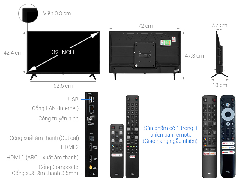 Kích thước màn hình tivi TCL 32 inch thích hợp để ở các không gian như: Phòng khách, phòng họp, phòng ngủ,…