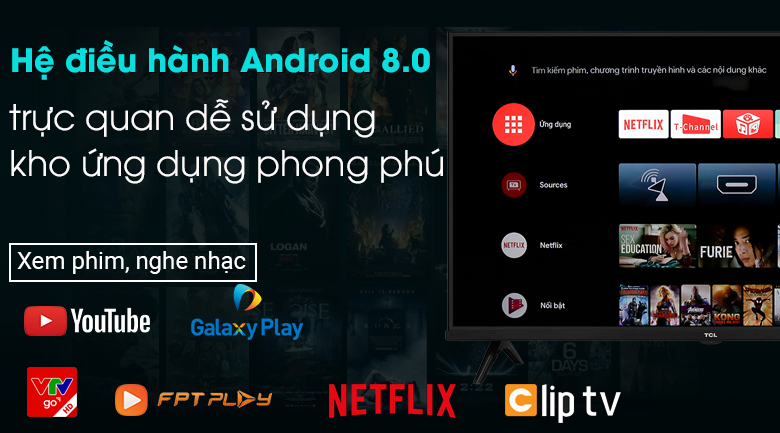 Android Tivi có hệ điều hành Android 8.0 sở hữu giao diện trực quan dễ sử dụng, giúp bạn có thể nhanh chóng làm quen khi sử dụng tivi mà không gặp bất kì khó khăn nào.