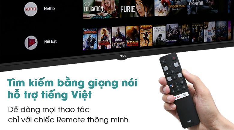 Tivi TCL sở hữu remote thông minh có khả năng tìm kiếm giọng nói bằng tiếng Việt giúp bạn thỏa sức tìm kiếm nội dung mà mình yêu thích mà không cần phải di chuyển chọn từng kí tự trên màn hình nữa.