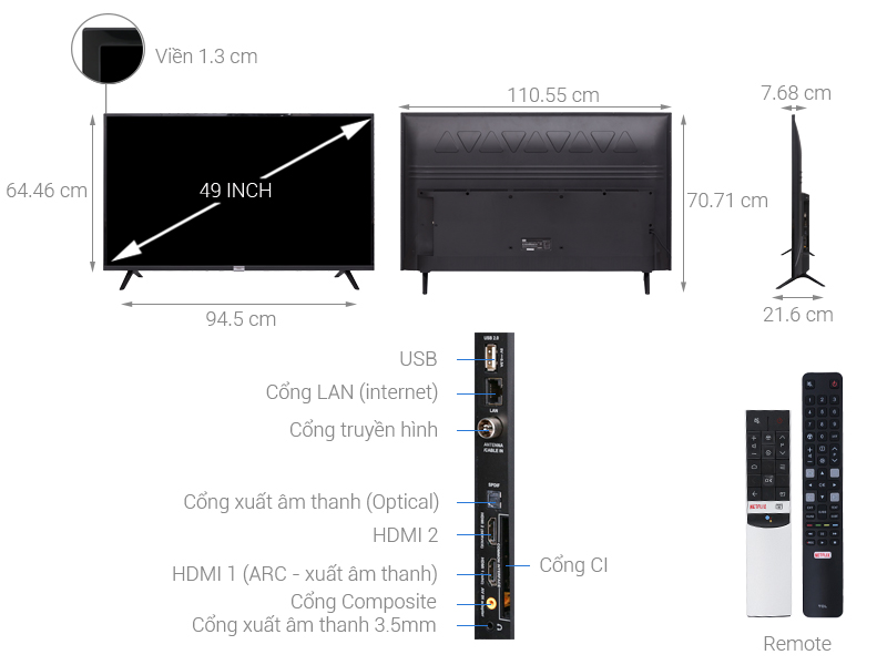 Tivi có kích thước màn hình 49 inch sẽ phù hợp với các không gian lớn như phòng khách gia đình, phòng họp, phòng hội nghị công ty,…