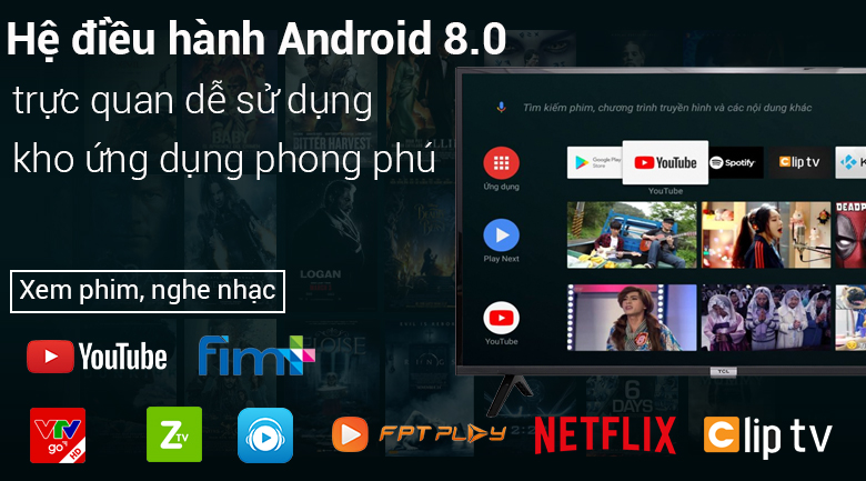 Smart tivi TCL này còn được cài đặt sẵn các ứng dụng như: Trình duyệt web, YouTube, Google Play, Zing TV, Clip TV, Netflix,… cho bạn những phút giây vui vẻ bên người thân.