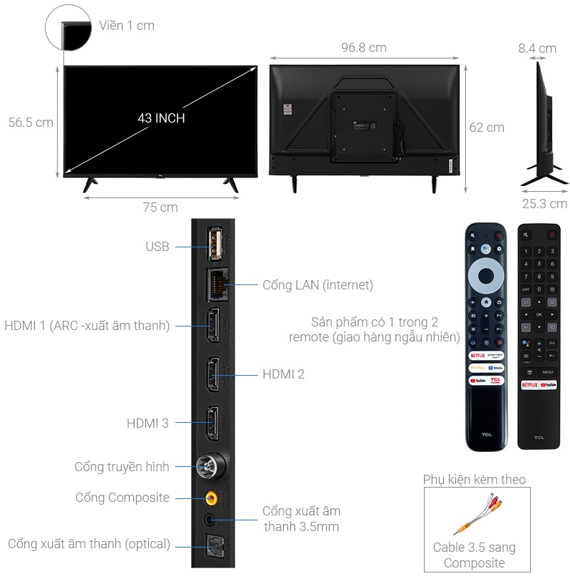 Kích thước 43 inch thích hợp cho phòng ngủ hay phòng khách của những căn hộ.
