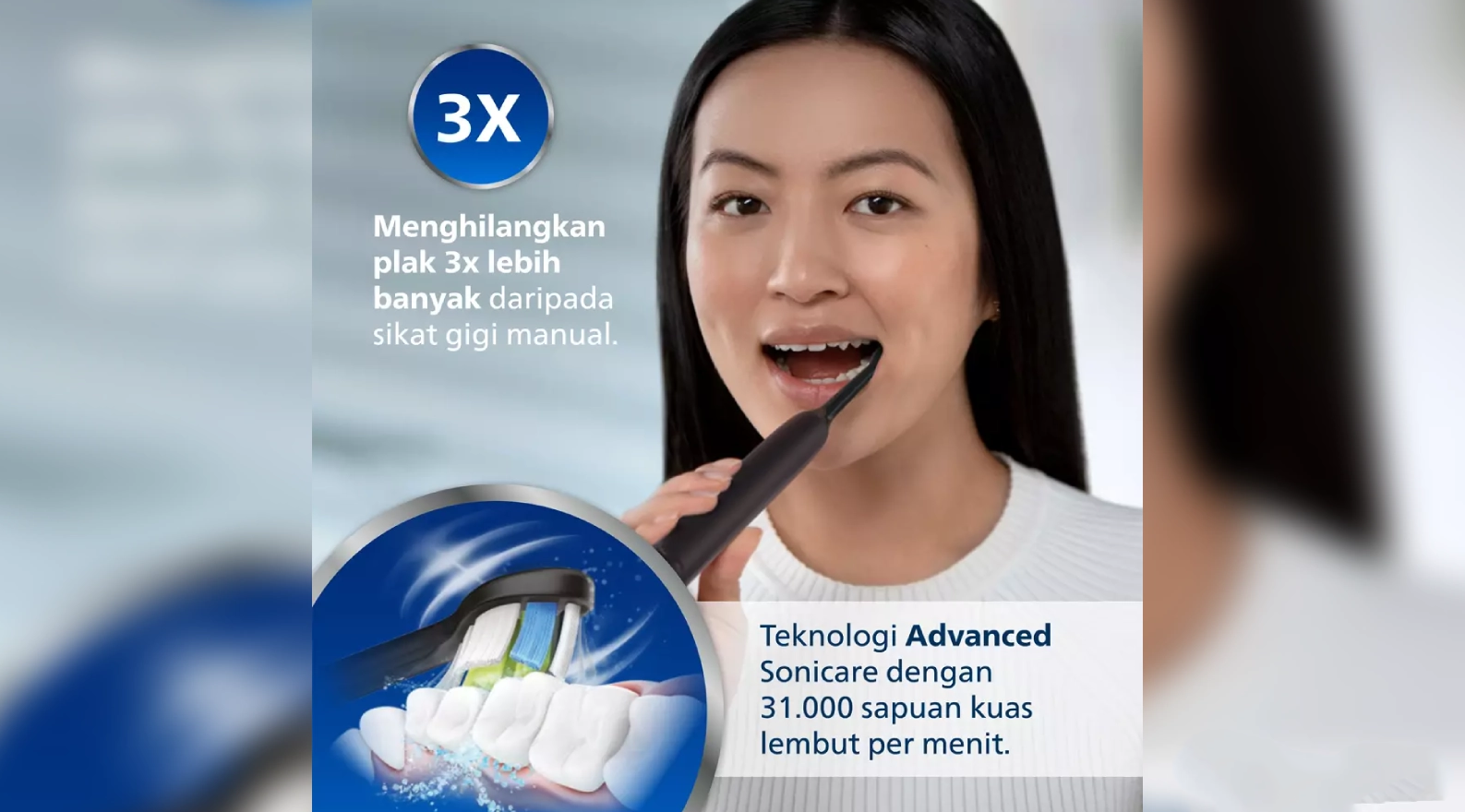 Bàn chải điện Sonicare có công nghệ sonic tiên tiến được chứng minh lâm sàng giúp loại bỏ mảng bám nhiều hơn gấp 3 lần trên răng và dọc theo đường viền nướu đồng thời bảo vệ nướu răng của bạn