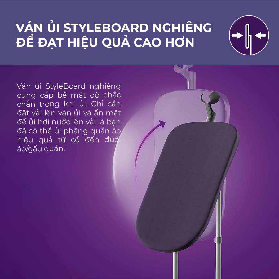 Bàn ủi hơi nước đứng Philips STE3160/30 thiết kế thời thượng, màu sắc mới lạ tô điểm cho không gian nhà bạn thêm phần hiện đại. Bên cạnh đó với ván ủi StyleBoard nghiêng cung cấp bề mặt đỡ chắc chắn trong khi ủi. Chỉ cần đặt vải lên ván ủi và để mặt đế ủi hơi nước lên vải là bạn đã có thể ủi phẳng quần áo hiệu quả từ cổ đến đuôi áo/gấu quần. Chẳng những thế, với kích thước gọn gàng bạn có thể dễ dàng cất gọn bàn ủi, tiết kiệm không gian.