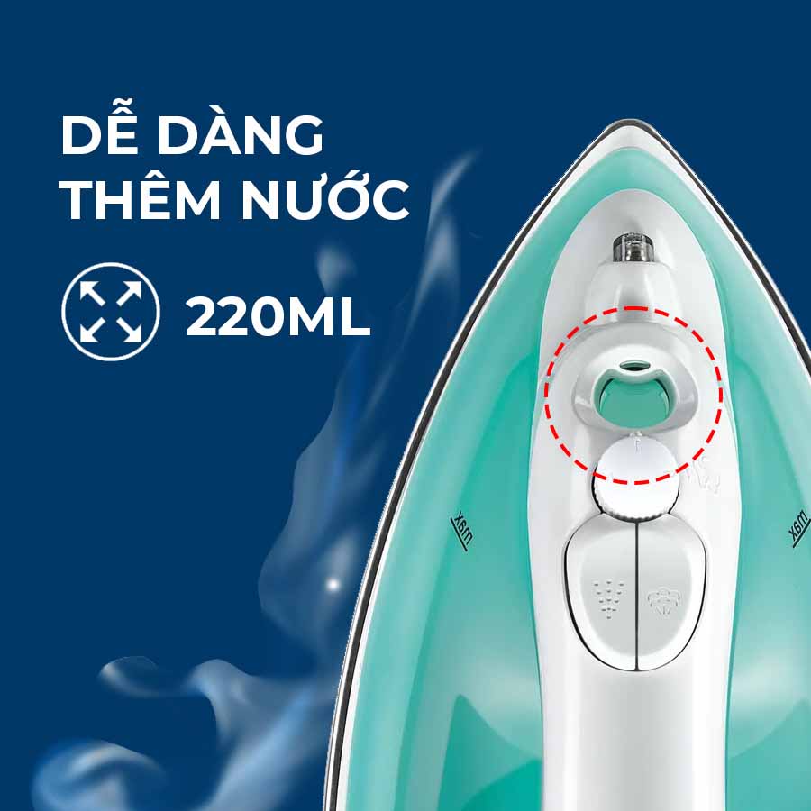 Dung tích chứa của bể nước lên đến 220ml, điều này giúp người dùng là ủi quần áo trong thời gian dài.