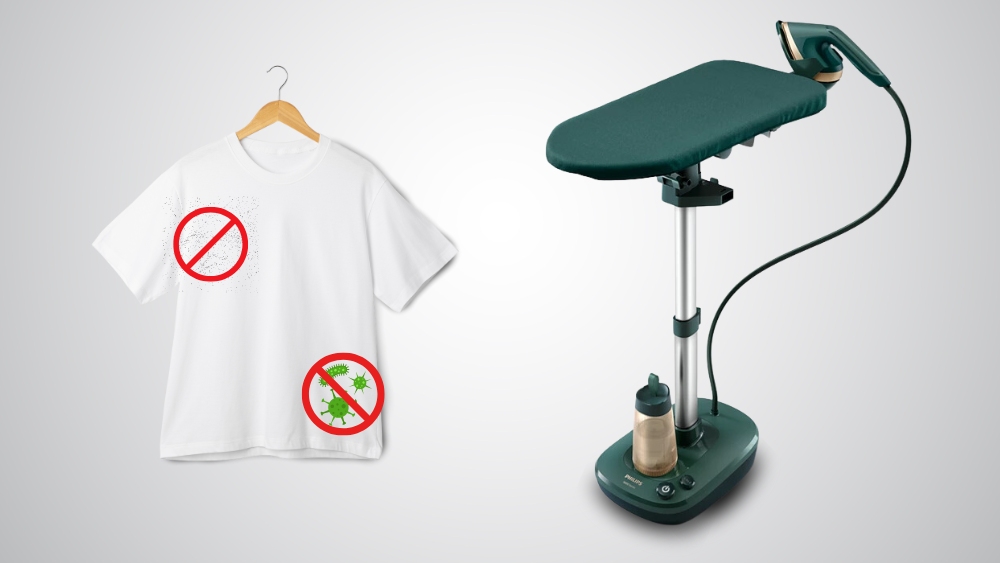 – Không chỉ giúp làm phẳng nhanh quần áo, tính năng phun hơi này còn giúp tiêu diệt vi khuẩn và mồ hôi, cho quần áo luôn thơm mới mỗi ngày.