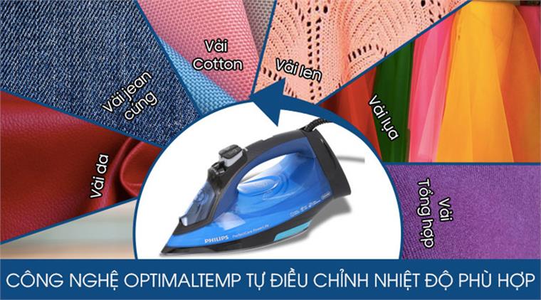 Bạn không cần phân loại quần áo trước khi ủi hay tạm dừng để điều chỉnh nhiệt và chờ bàn ủi nóng lên/nguội bớt khi thay đổi chất liệu vải là ủi. Với công nghệ OptimalTEMP tự động điều chỉnh nhiệt, từ chất liệu jean cho đến lụa đều được ủi an toàn.