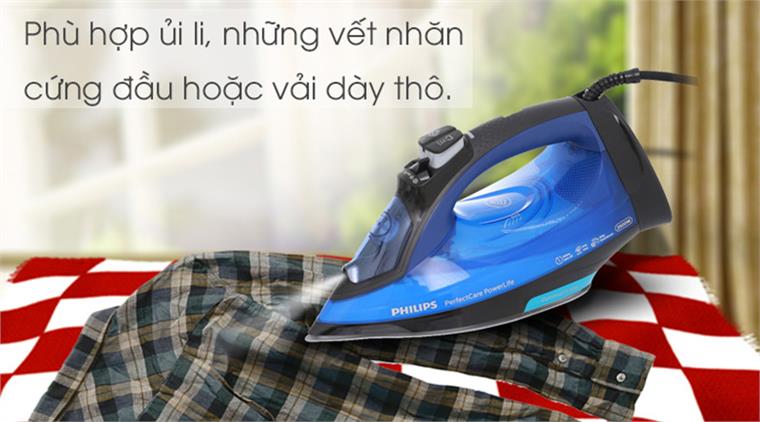 Phun tia giúp hơi nước tập trung vào vết nhăn, ủi hiệu quả đặc biệt với các vị trí xếp li.