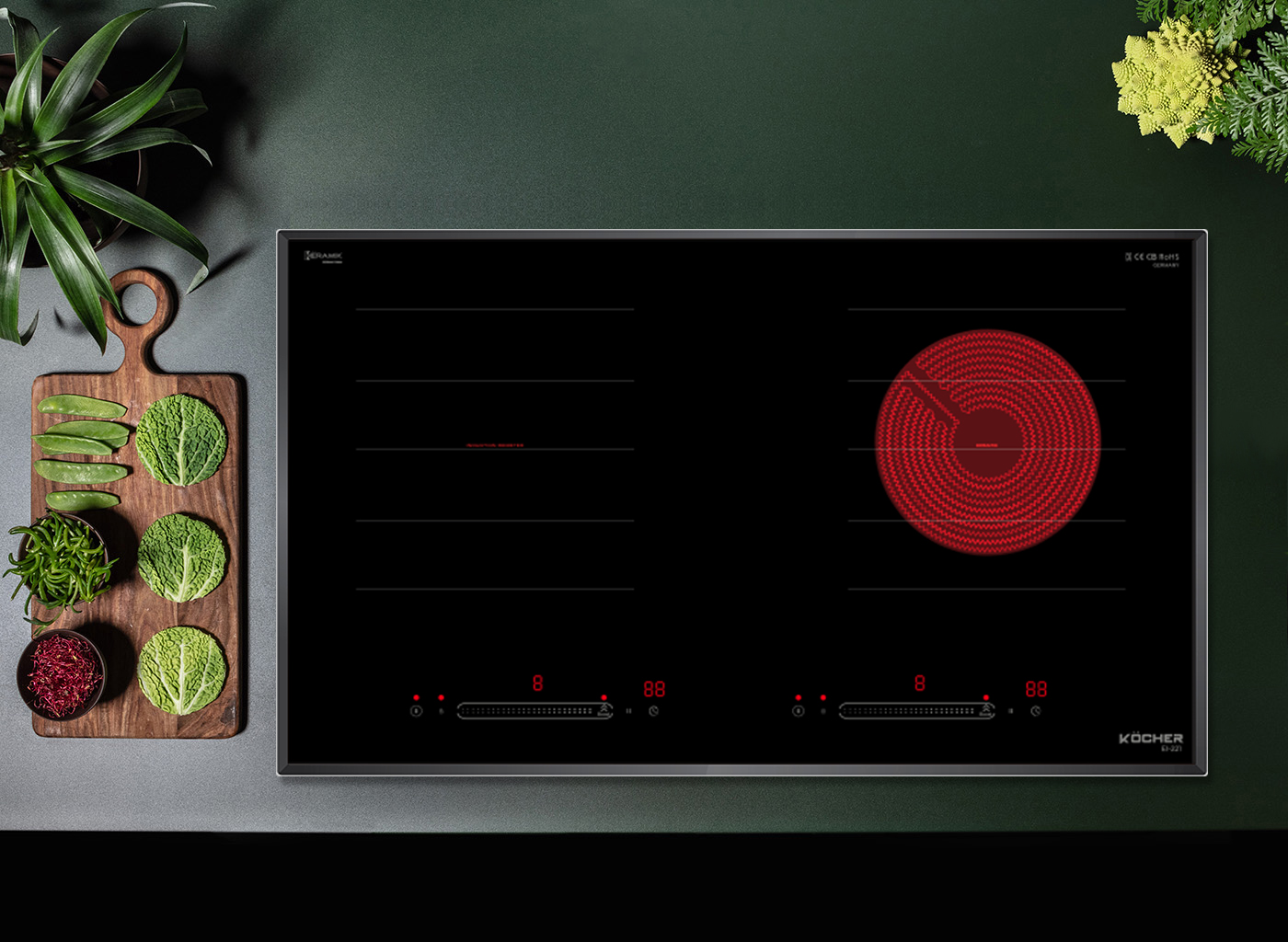 Bếp điện từ Kocher EI-221 sử dụng mặt kính Keramik sản xuất tại Malaysia, mặt kính được làm từ chất liệu gốm thủy tinh có khả năng chịu nhiệt lên đến 1150°C, kháng sốc 600°C. Bề mặt kính chịu nóng lạnh cũng như sự thay đổi đột ngột của nhiệt độ. Độ giãn nở vì nhiệt thấp nên bếp hoạt động rất hiệu quả và cách nhiệt. Mặt bếp tản nhiệt nhanh và được cách điện an toàn với các linh kiện điện tử bên trong thân. Bạn có thể yên tâm sử dụng mà không lo bị bỏng hay điện giật.