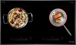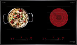 Bạn có thể tận dụng các loại xoong, nồi vì bếp điện không kén nồi, phù hợp với nhiều kích cỡ. Ưu điểm của bếp điện hơn hẳn các sản phẩm khác là có thể nướng trực tiếp lên bề mặt. Nướng thịt, rau củ, hải sản thơm ngon. Bạn nên vệ sinh sạch sẽ mặt bếp sau khi sử dụng. Hoạt động của bếp điện là truyền nhiệt lên mặt kính rồi mới lên đáy nồi nên mặt kính bếp rất nóng. Sau khi nấu, bạn có thể tận dụng hâm nóng thức ăn trên bếp. Ngược lại với vùng điện, bếp từ chỉ hơi nóng vùng nấu. Hiệu suất nấu lên tới 90%. Chức năng nhận diện vùng nấu chỉ sinh nhiệt vùng đáy nồi, tránh nồi thất thoát nhiệt ra ngoài. Chức năng Booster ở vùng từ nấu siêu nhanh kích hoạt công suất MAX 2200W, tuy nhiên thời gian tối đa mặc định dùng chức năng này là 10 phút/lần tránh quá tải.