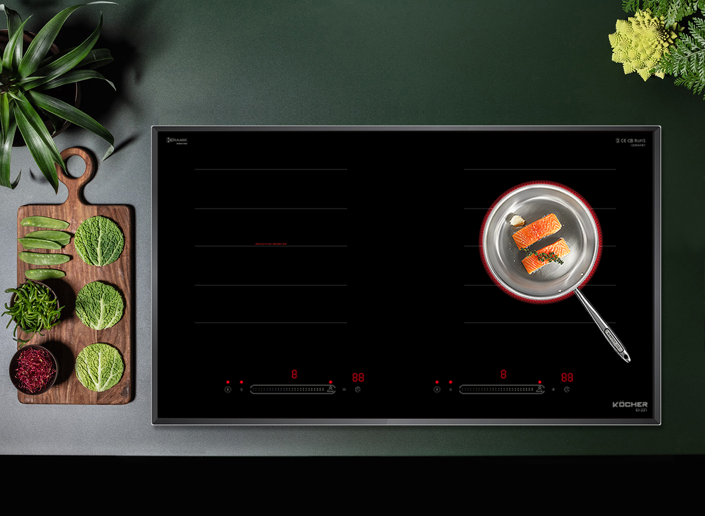 Tự động phát hiện vùng nấu và vùng nấu chỉ nóng lên khi có nồi: Các sản phẩm bếp điện từ của Kocher bao gồm EI-221 sẽ chỉ khởi động công suất khi nồi được đặt lên vùng nấu, trường hợp chưa đặt nồi khi đã khởi động, bếp sẽ không đóng công suất và cảnh báo mã lỗi không có nồi hoặc nồi không phù hợp.