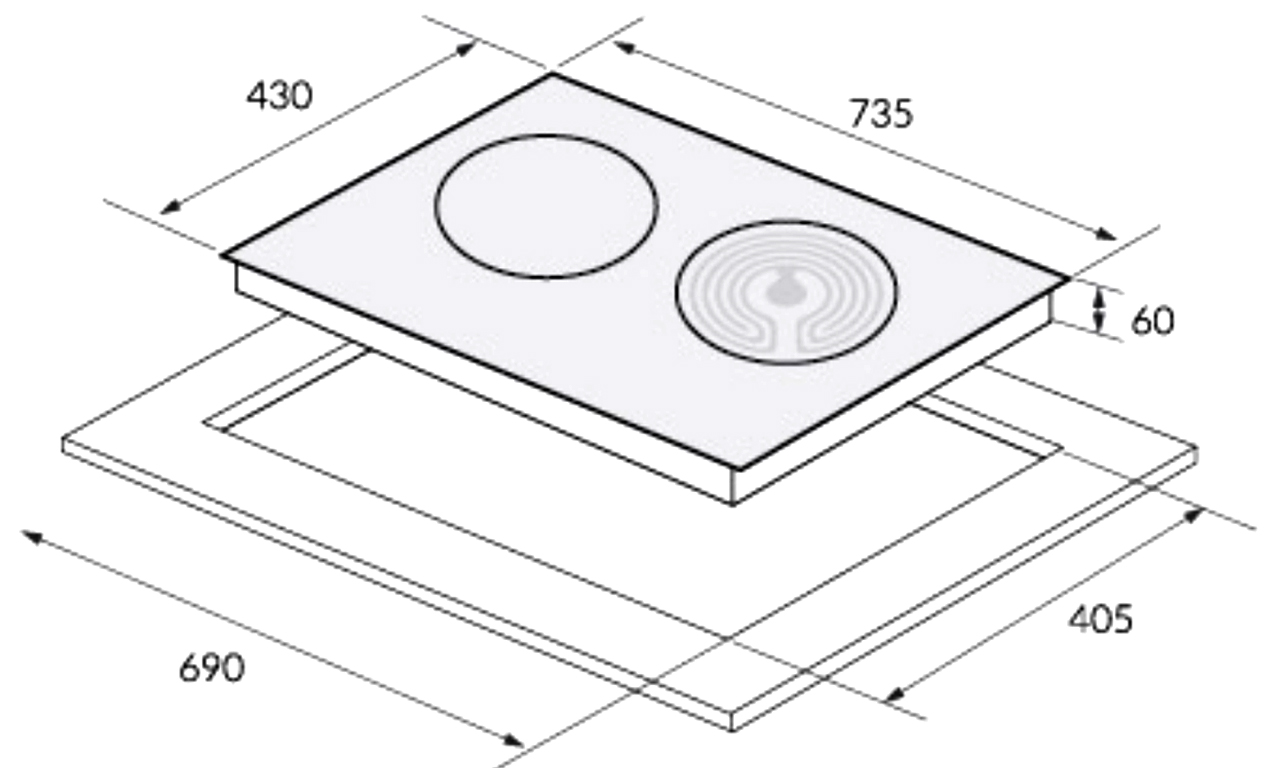 Đây là mặt kính chuyên dụng dành cho bếp điện từ, là một loại kính có chất lượng cao, rất cứng, bền và có nhiều đặc điểm nổi trội như: khả năng chịu nhiệt, khả năng chống trầy xước và chống va đập …. Mặt kính gồm các thấu kính hội tụ, truyền nhiệt từ bếp lên đáy nồi theo phương thẳng đứng, không thất thoát nhiệt ra môi trường. Mặt kính màu xám liền nguyên khối, an toàn, thẩm mỹ và tiện trong việc vệ sinh, lau chùi.
