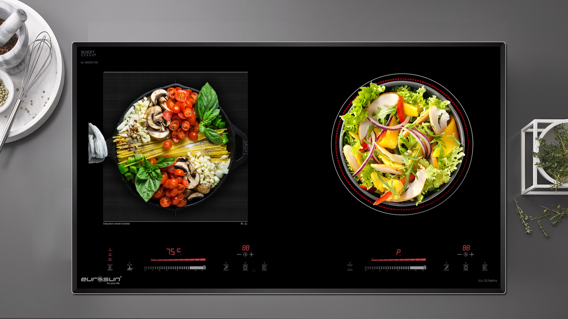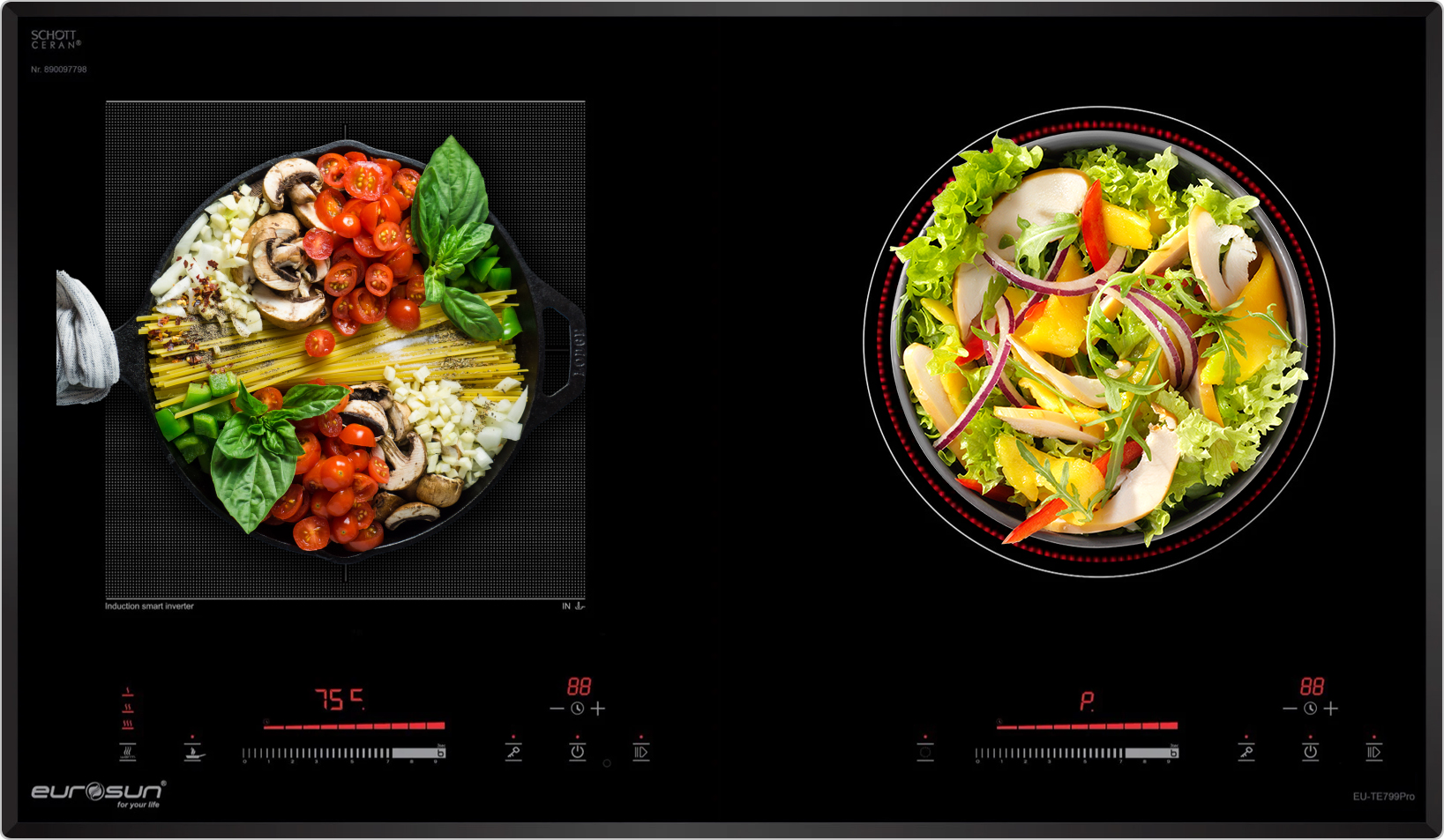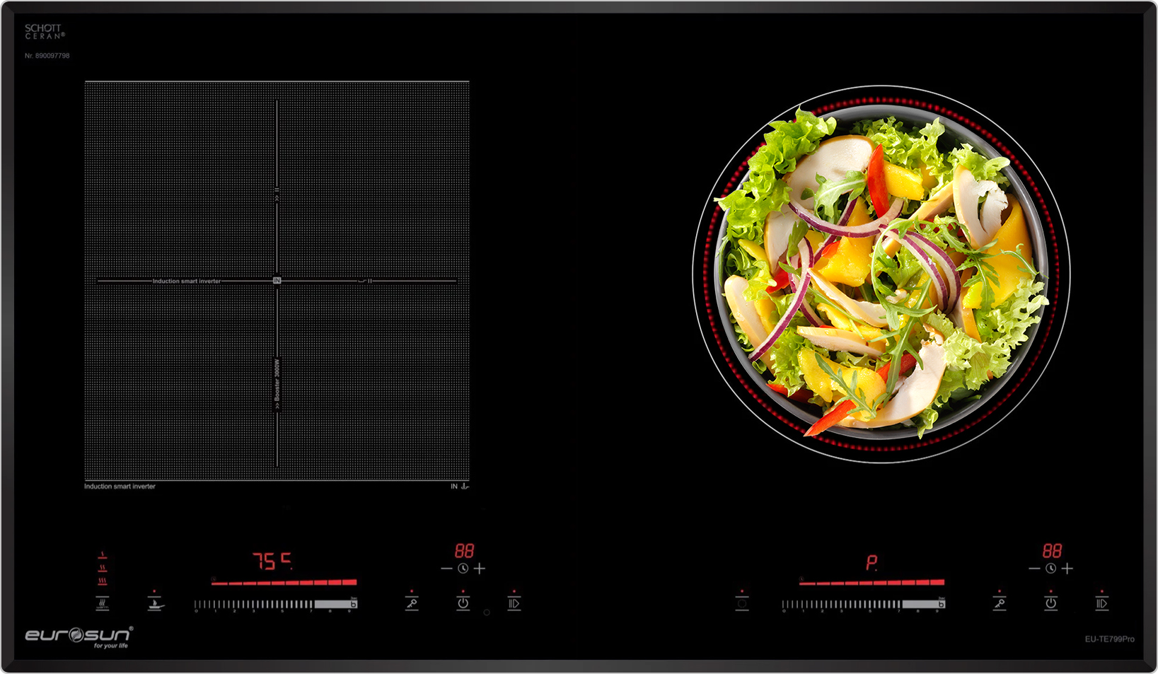 Bếp điện từ Eurosun EU-TE799Pro được tích hợp chức năng tự nhận diện vùng nấu, khi ta đặt nồi lên vùng nấu từ sau đó ấn nút khởi động bếp sau thời gian 1-2 giây bếp sẽ tự động tìm vùng nấu đã có nồi, ta chỉ việc điều chỉnh mức công suất to nhỏ theo ý muốn mà không phải thao tác chọn vùng nấu như bếp thông thường. Công nghệ Inverter được áp dụng trên bếp điện từ Eurosun EU-TE799Pro có khả năng phản ứng thay đổi công suất theo điều khiển ngay tức thì, khi người dùng điều chỉnh tăng giảm nhiệt độ đun nấu, bếp điều chỉnh thay đổi tức thì về mức nhiệt độ mong muốn.