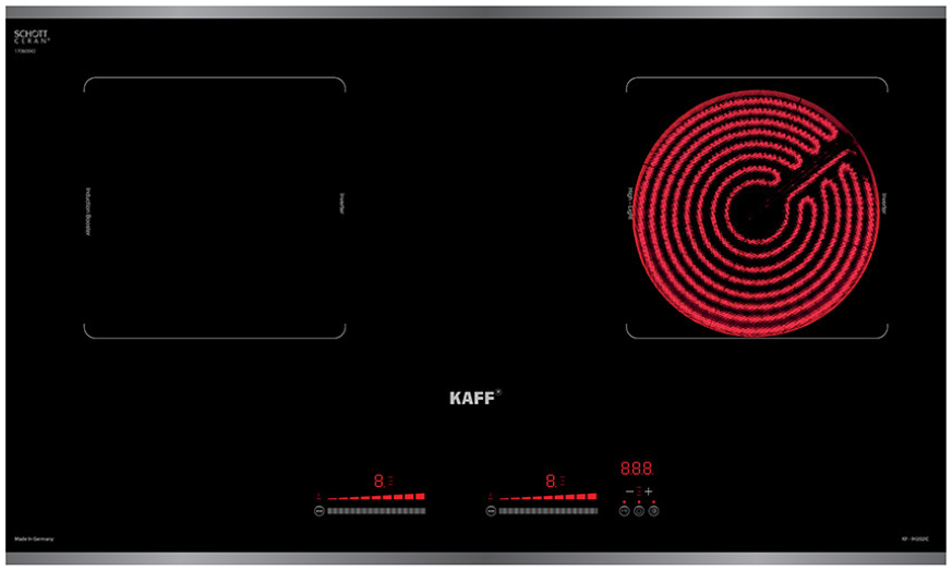 KAFF KF-IH202IC là dòng bếp từ đôi cao cấp nhập khẩu, thiết kế hiện đại với mặt kính Schott Ceran siêu bền từ CHLB Đức. Sản phẩm mang đến sự kết hợp hoàn hảo giữa hiệu suất nấu nướng mạnh mẽ, tính năng thông minh và khả năng tiết kiệm năng lượng vượt trội, lý tưởng cho gian bếp hiện đại của các gia đình Việt.