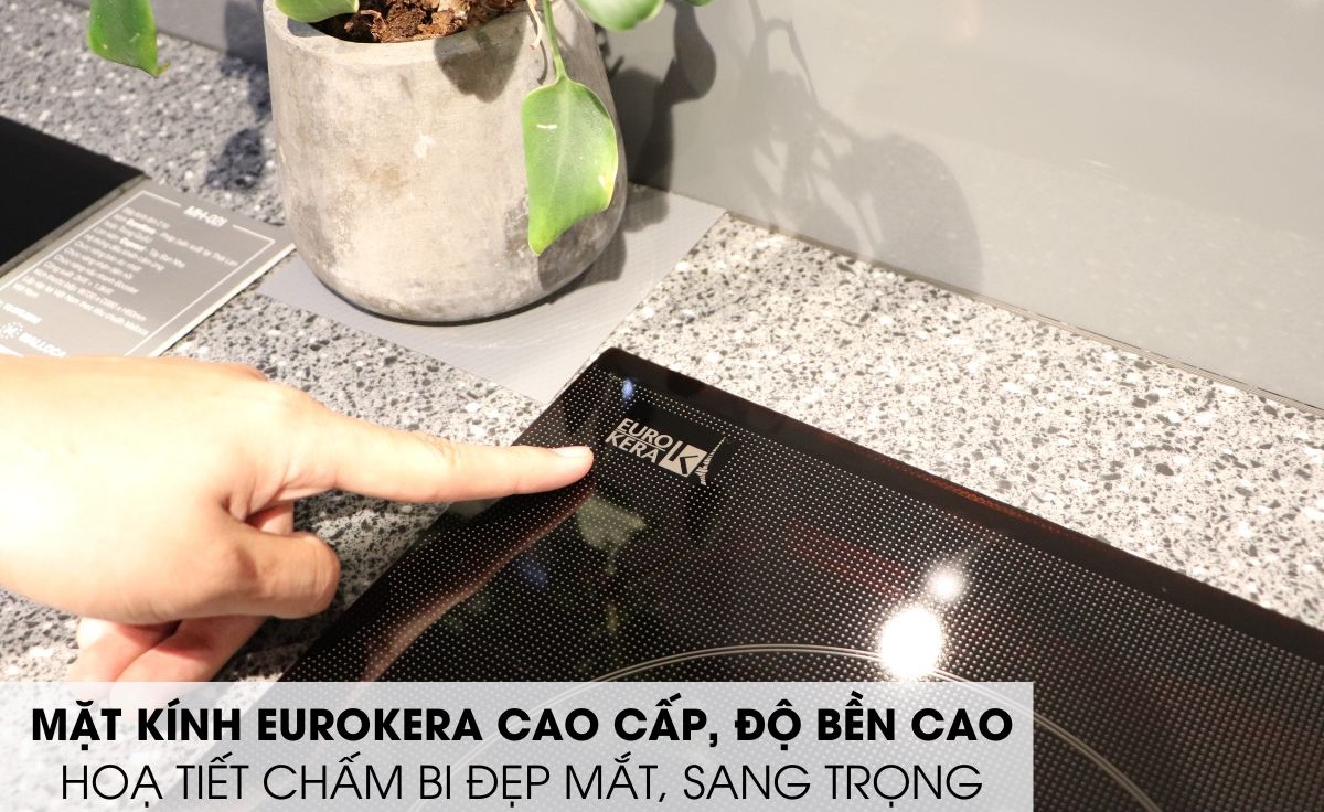Mặt kính: Sản phẩm sử dụng mặt kính Eurokera mang đến nhiều tính năng, đặc biệt nhất là khả năng chịu nhiệt, chịu lực, chống va đập, trầy xước tốt, bền bỉ với thời gian. Sản phẩm làm từ thuỷ tính gốm sứ này có thể chịu được sốc nhiệt lên tới 700°C (1300°C) và các biến đổi nhiệt khắc nghiệt nhất. trong quá trình vệ sinh bếp điện từ malloca bạn cần sử dụng dung dịch tẩy rửa chuyên dụng để bảo vệ bề mặt kinhs của bếp tránh bị ăn mòn