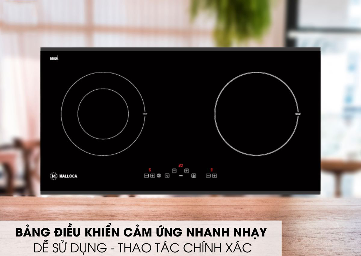 Điều khiển: Bếp điện tử Malloca sử dụng bảng điều khiển cảm ứng siêu nhạy kể cả khi tay ướt bạn vẫn có thể sử dụng được. Chính vì vậy khi có nước sôi trào vào thì bếp sẽ tự động tắt. Bạn dễ dàng điều khiển mức độ nấu chỉ bằng thao tác nhẹ nhàng