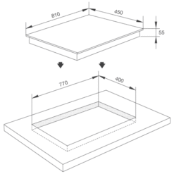 Bếp 2 từ 1 điện MH 03IR N được hoàn thiện theo dạng hình chữ nhật với kích thước D81xR45 cm, tương ứng với lỗ đá D77xR40 cm. Đây là kích thước phù hợp với đa số không gian bếp của gia đình Việt Nam, vừa đảm bảo nhu cầu nấu ăn tiện lợi vừa tối ưu diện tích để bạn có thể bố trí thêm các thiết bị bếp khác như chậu rửa chén, máy hút mùi, lò nướng,…