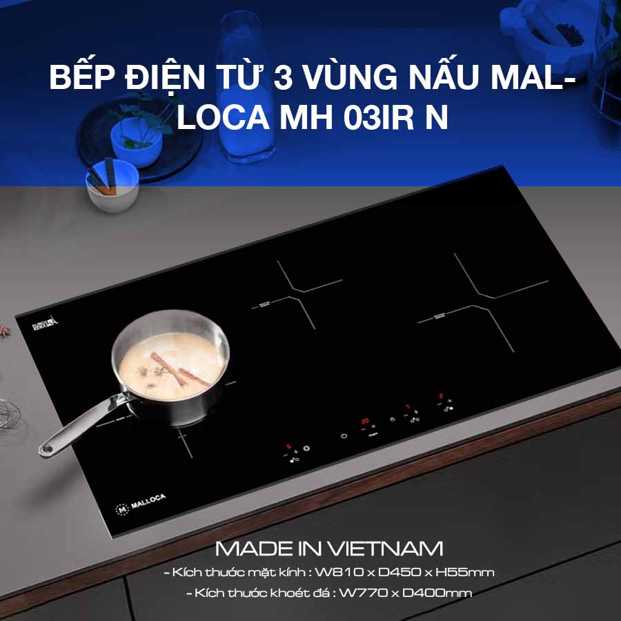 Bếp điện từ Malloca MH 03IR N – Bếp 3 vùng nấu tiện lợi