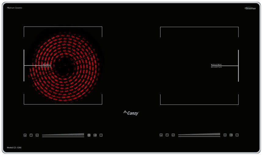 Bếp điện từ Canzy CZ 52IG được thiết kế 2 vùng nấu gồm 1 từ + 1 hồng ngoại tiện lợi, kiểu dáng hiện đại, tinh tế, tiện dụng. Bếp sở hữu gam màu đen sang trọng tạo điểm nhấn cho không gian lắp đặt sử dụng, phù hợp với hầu hết mọi thiết kế nội thất bếp gia đình. Bếp trang bị mặt kính Platinum Ceramic vát cạnh viền nhôm bo 4 góc, mặt kính chịu lực và chịu nhiệt tốt.