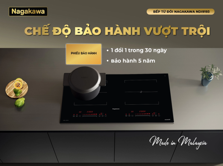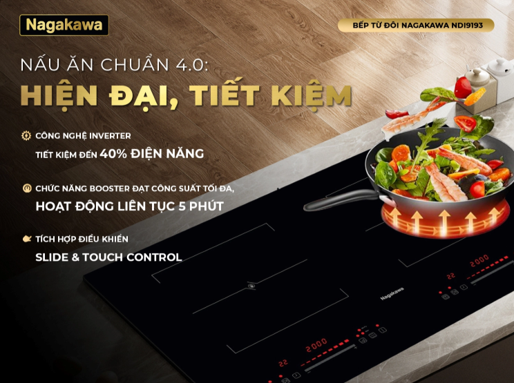 Bếp từ đôi Nagakawa NDI9193 – Sang trọng, tiện nghi và tiết kiệm điện