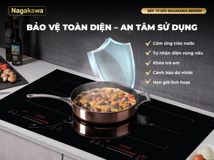 Bếp từ Nagakawa NDI9193 không chỉ đảm bảo hiệu suất nấu nướng mà còn được tích hợp các tính năng an toàn thông minh hàng đầu.