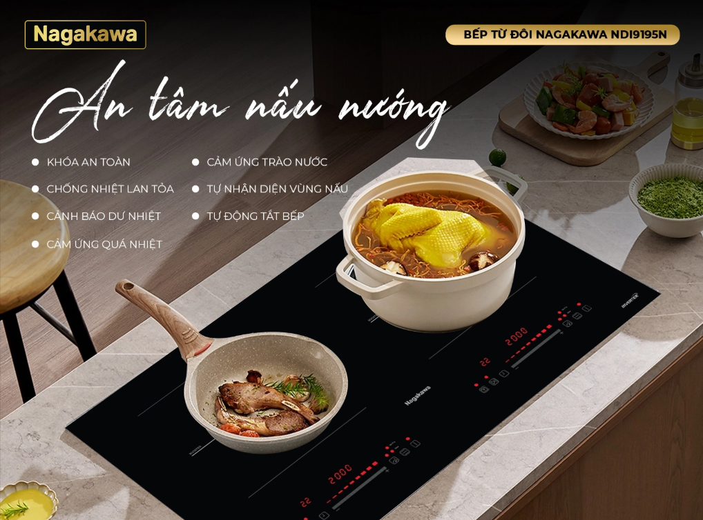 Bếp từ đôi Nagakawa NDI9194 – Sự lựa chọn hoàn hảo cho gian bếp hiện đại