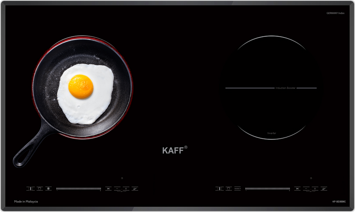 Bếp điện từ Kaff KF-SD300IC được tích hợp chức năng tự nhận diện vùng nấu, khi ta đặt nồi lên 1 trong 2 vùng nấu sau đó ấn nút khởi động bếp sau thời gian 1-2 giây bếp sẽ tự động tìm vùng nấu đã có nồi, ta chỉ việc điều chỉnh mức công suất to nhỏ theo ý muốn mà không phải thao tác chọn vùng nấu như bếp thông thường. Công nghệ Inverter được áp dụng trên bếp điện từ Kaff KF-SD300IC có khả năng phản ứng thay đổi công suất theo điều khiển ngay tức thì, khi người dùng điều chỉnh tăng giảm nhiệt độ đun nấu, bếp điều chỉnh thay đổi tức thì về mức nhiệt độ mong muốn.