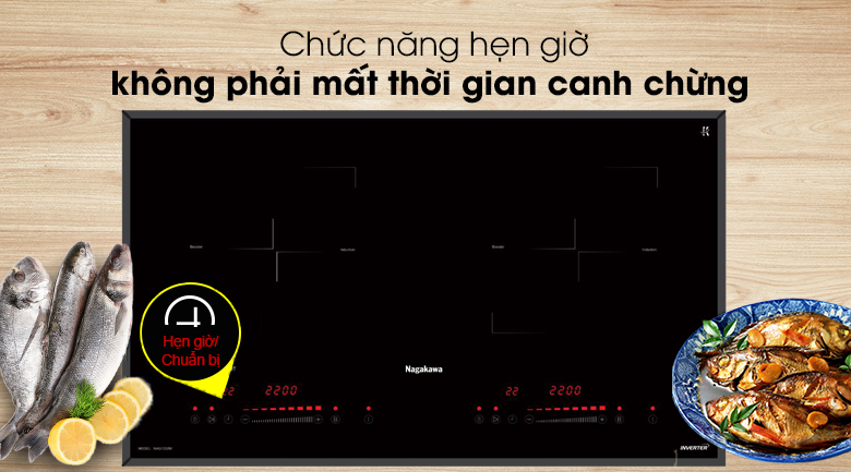 Chủ động kiểm soát thời gian nấu chính xác cho từng món với chức năng hẹn giờ tiện lợi, thao tác cài đặt nhanh chóng độc lập cho từng vùng nấu với các món ăn khác nhau, thời gian hẹn giờ lên đến 99 phút. Chức năng này cực hữu ích cho người bận rộn, bạn có thể thoải mái làm nhiều việc khác, kể cả đi ra ngoài mà không cần lo lắng thức ăn bị cháy khét. Khi hết thời gian cài đặt, vùng nấu được cài đặt sẽ tự ngắt. Sau khi xong việc, bạn sẽ được thưởng thức món ăn ngon lành đã sẵn sàng trên bếp.