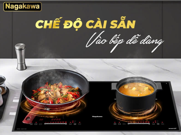 Chương trình nấu cài đặt sẵn của bếp đôi điện từ Nagakawa NAG1214M sẽ là người trợ giúp đắc lực cho những ai bận rộn, ít có thời gian nấu nướng hoặc mới bắt đầu học nấu ăn.