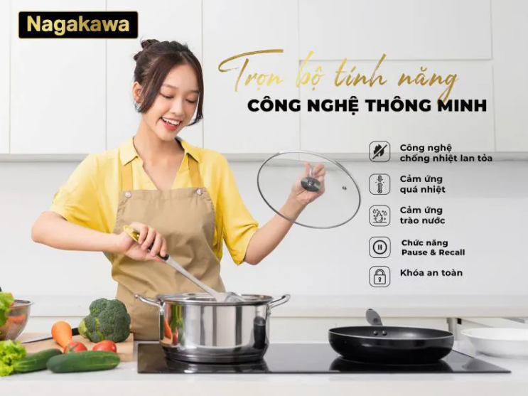 Bếp đôi điện từ Nagakawa NK2C01M tích hợp nhiều tính năng an toàn hiện đại, mang đến sự an tâm cho người dùng, đặc biệt là những gia đình có trẻ nhỏ hay khi phát sinh công việc bất ngờ không kịp trở tay: