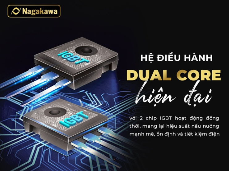 Bếp đôi điện từ Nagakawa NK2C02M được trang bị hệ điều hành Dual Core hiện đại, sử dụng 2 chip IGBT hoạt động đồng thời, mang đến nhiều ưu điểm nổi bật. Với công suất mạnh mẽ, có thể đạt tối đa 2400W trong vòng vài giây, hoạt động vô cùng ổn định đảm bảo cho việc nấu nướng được hiệu quả và tiết kiệm thời gian. Nhờ công nghệ biến tần, hệ thống IGBT hoạt động luân phiên, giúp tối ưu hóa hiệu quả sử dụng điện, đồng thời giảm thiểu hao mòn, kéo dài tuổi thọ cho bếp.