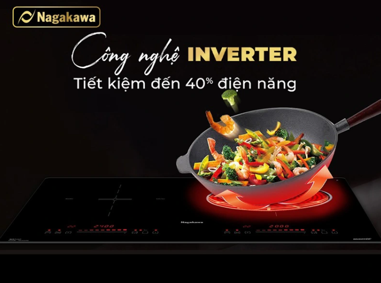 Bếp đôi điện từ Nagakawa NK2C02M ứng dụng công nghệ Inverter tiên tiến, giúp kiểm soát công suất thông minh, tối ưu hóa hiệu quả sử dụng năng lượng. Nhờ vậy, bếp sẽ tiết kiệm điện năng tối đa trong quá trình nấu nướng, giảm thiểu chi phí điện cho gia đình bạn. Công nghệ Inverter giúp bếp hoạt động ổn định, duy trì mức nhiệt độ chính xác theo từng mức công suất cài đặt giúp bếp hoạt động bền bỉ, giảm thiểu hao mòn linh kiện, tăng tuổi thọ cho sản phẩm.
