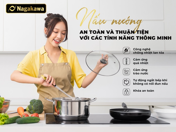 12. Nấu nướng an toàn và thuận tiện với các tính năng thông minh của bếp đôi điện từ Nagakawa NK2C02M