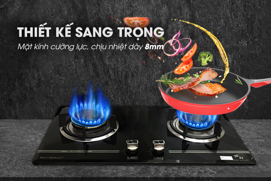 Bếp ga EUROSUN được trang bị mặt kính cường lực cỡ lớn, chịu nhiệt cao với kích thước lên đến 760*440mm dày 8mm, vát 4 cạnh. Đây là loại bếp ga được trang bị mặt kính lớn nhất hiện nay tạo thêm phần sang trọng cho không gian bếp.