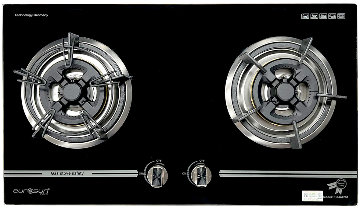 Bếp ga âm Eurosun EU-GA281 thiết kế 2 lò nấu, được sản xuất trên dây chuyền hiện đại với các linh kiện cao cấp đồng bộ cấu thành sản phẩm.