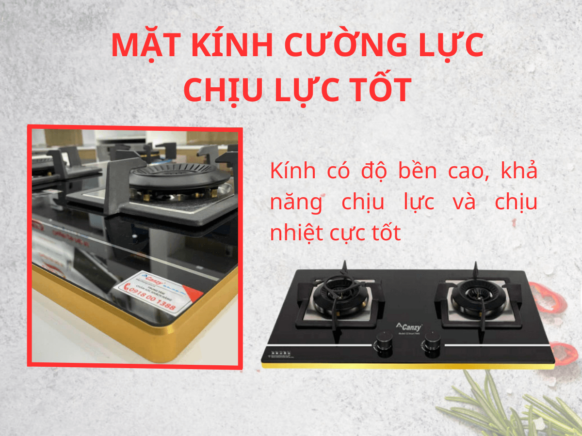 Bếp Gas Canzy CZ Smart 788G được lắp đặt mặt kính cường lực cao cấp, dày khoảng 8mm. Loại kính mà Canzy lắp đặt là chất liệu có độ bền cao, có khả năng chịu lực và chịu nhiệt cực tốt. Hơn nữa mặt kính này còn được mài nhẵn bóng, hạn chế bám bẩn, trầy xước và rất dễ dàng để vệ sinh, lau chùi.